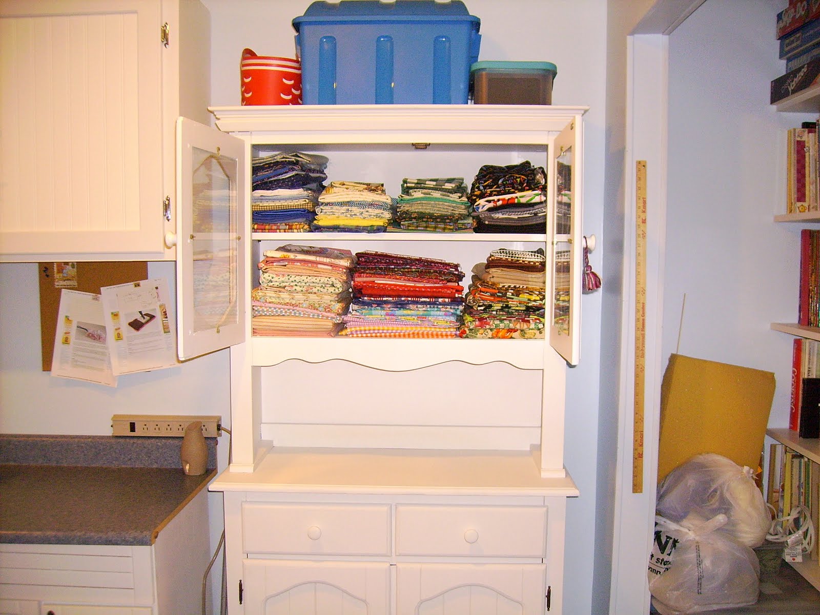 It has taken on a few different roles in my home. It was my dining room hutch for many, many years. When my husband built me a huge built-in hutch after Christmas, I struggled to find a place for it because it has sentimental significance and I couldn't part with it. Well, with a fresh coat of white paint, it has become my fabric hutch and it is perfect! A good friend of mine came over and folded and sorted all my fabric to make it all pleasing to the eye. She did a beautiful job. Thanks Loretta!